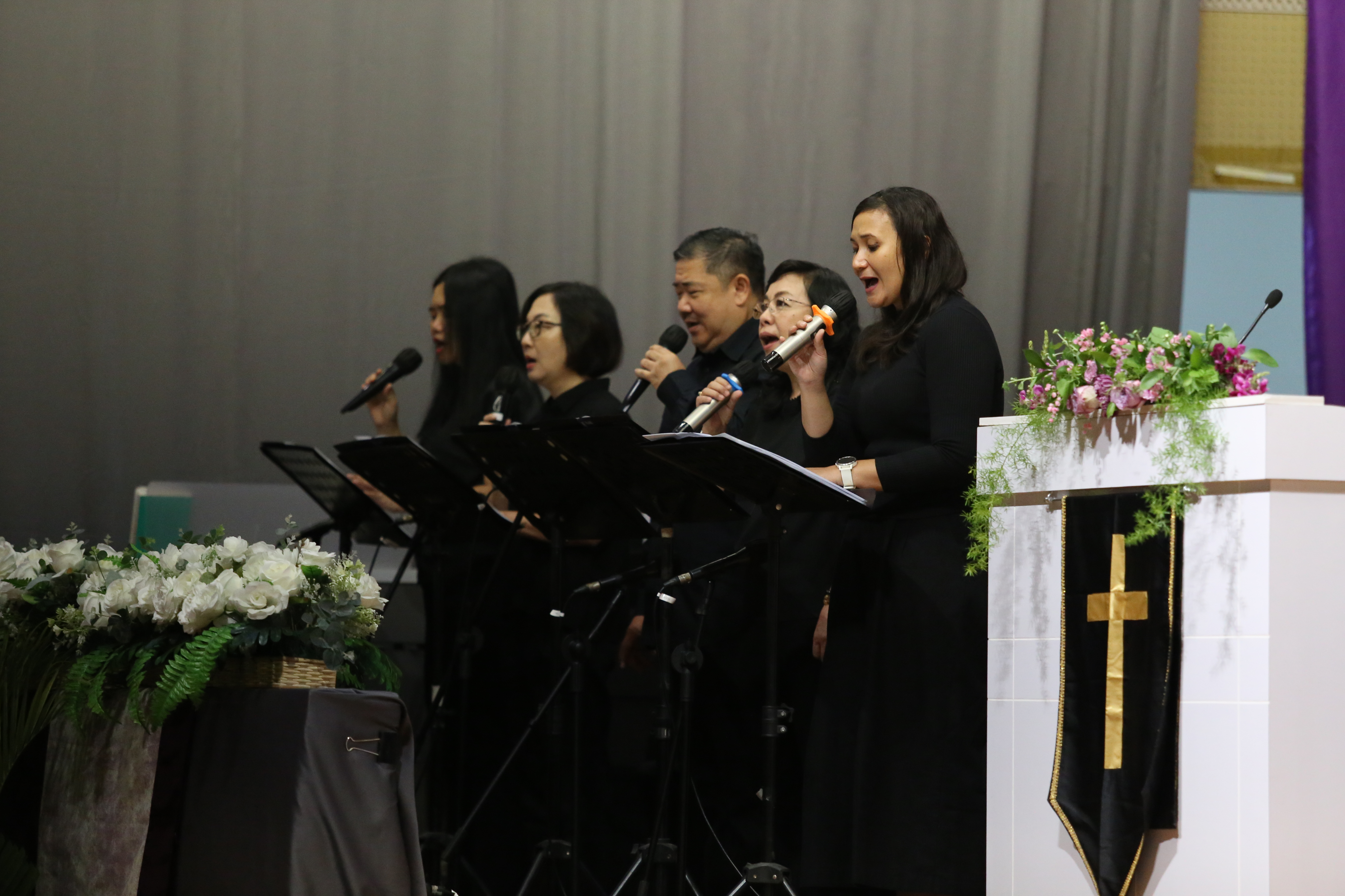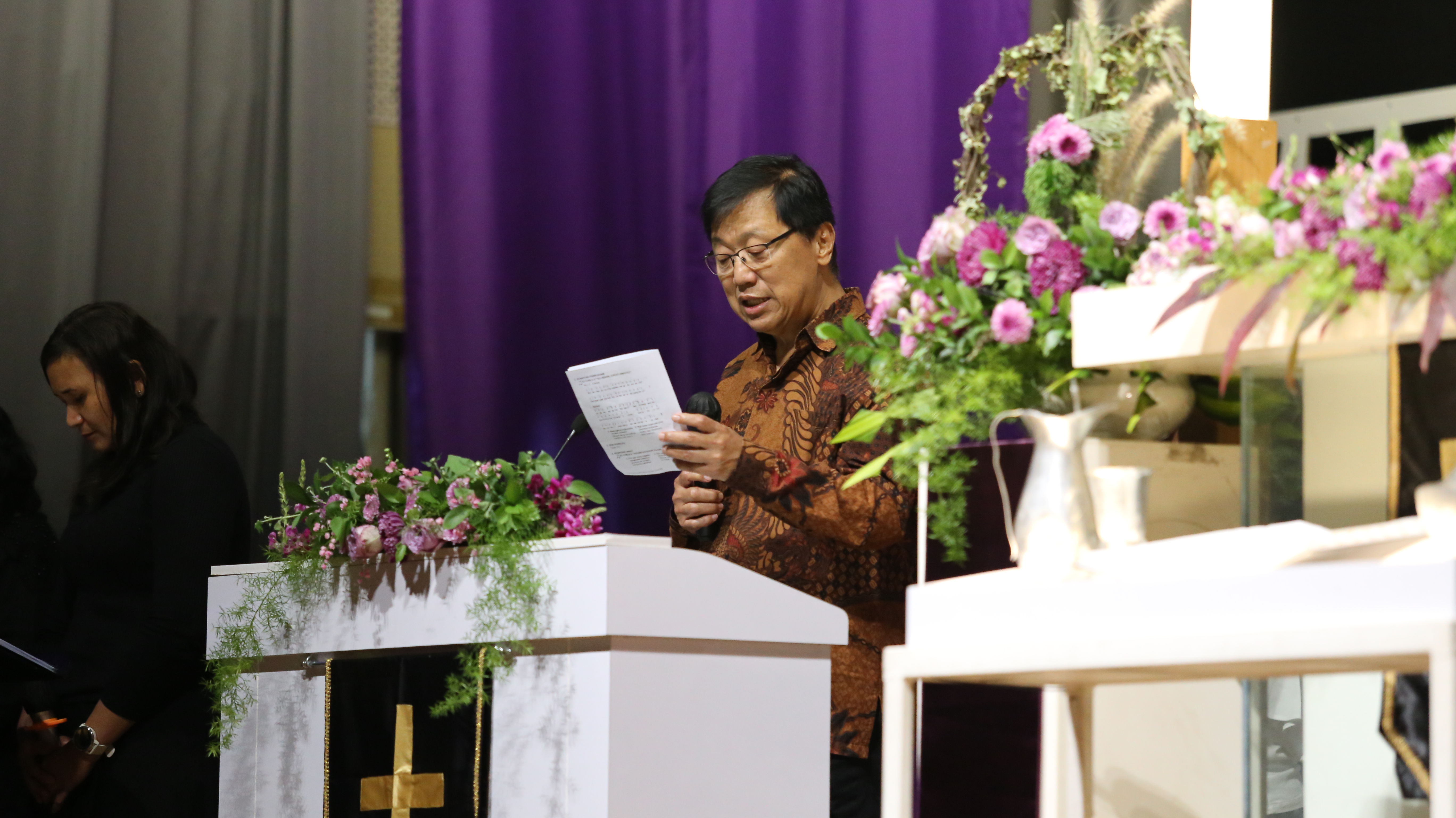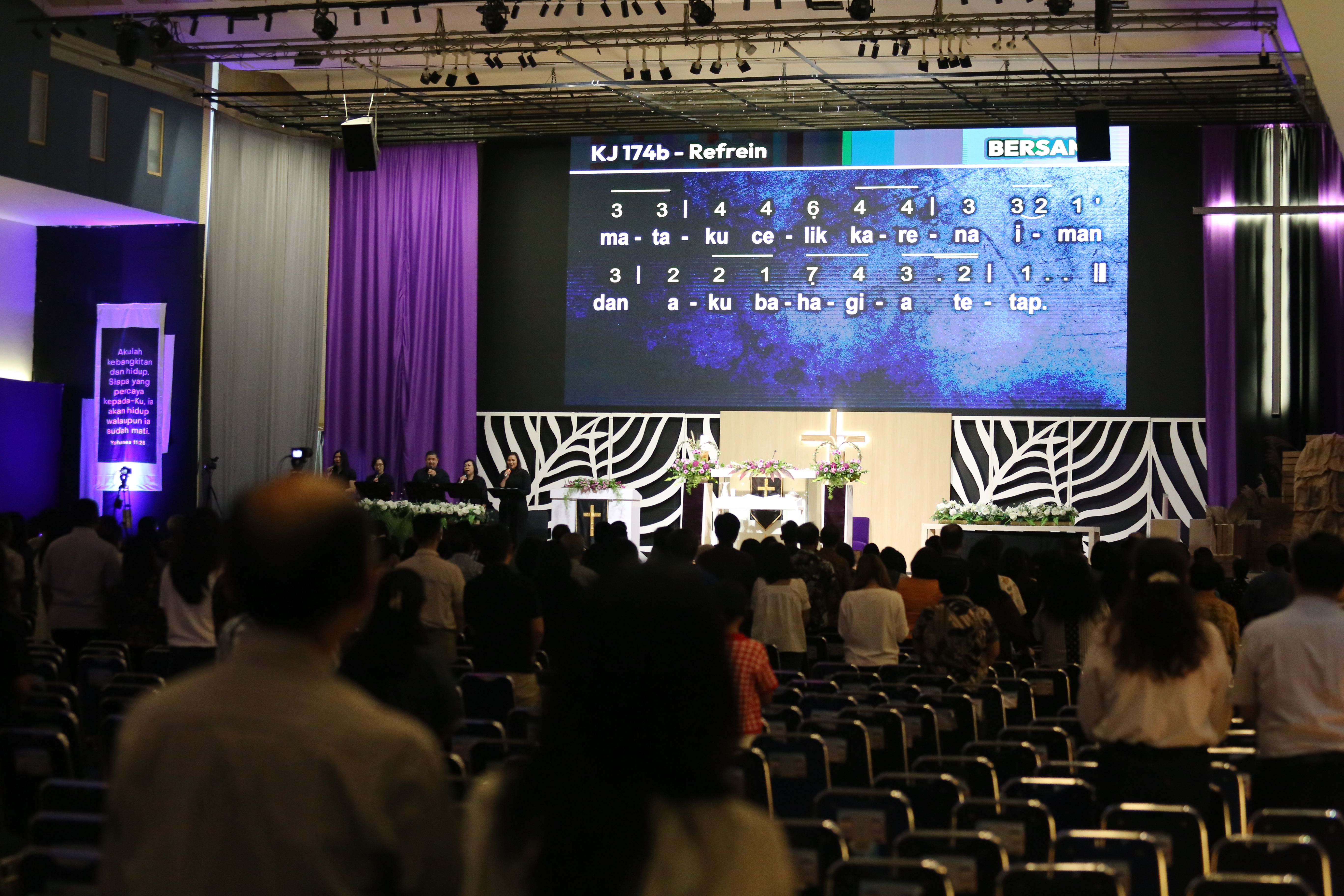 Sebanyak 242 jemaat hadir beribadah di Aula lantai 6 SMAK Penabur Gading Serpong, Jalan Kelapa Gading Barat, Pakulonan Barat, Kecamatan Kelapa Dua, Kabupaten Tangerang. Jemaat larut dalam suasana hening yang dibangun sejak awal ibadah, baik melalui pembacaan narasi maupun nyanyian, seperti KJ 174, “Ku Heran Jurus’lamatku”; NKB 173, “Ku Tak Dapat Maju Sendiri”; NKB 141, “Kasihku PadaMu Tambahkanlah”; dan “In Christ Alone”.