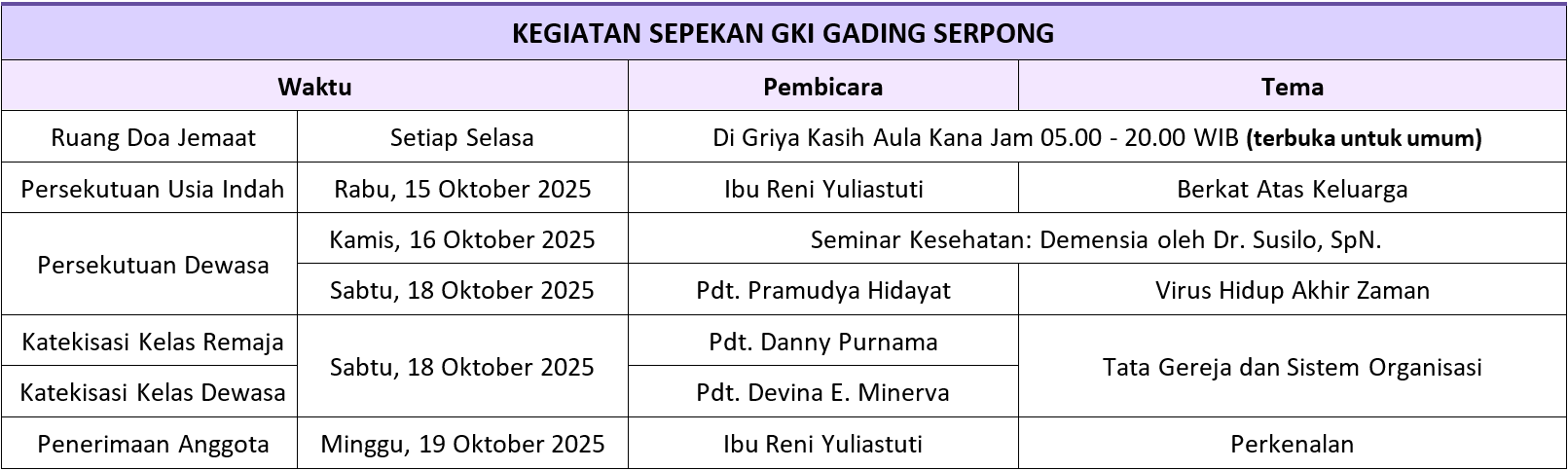 Kegiatan Sepekan (12 Oktober 2025 - 19 Oktober 2025)